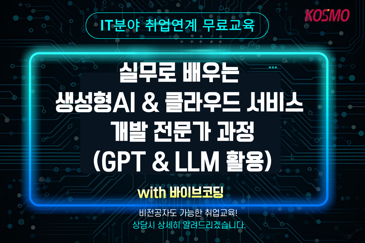 [K-디지털트레이닝 국비지원] 비전공자도 가능한 실무로 배우는 생성형AI&클라우드 서비스 개발자 양성과정
